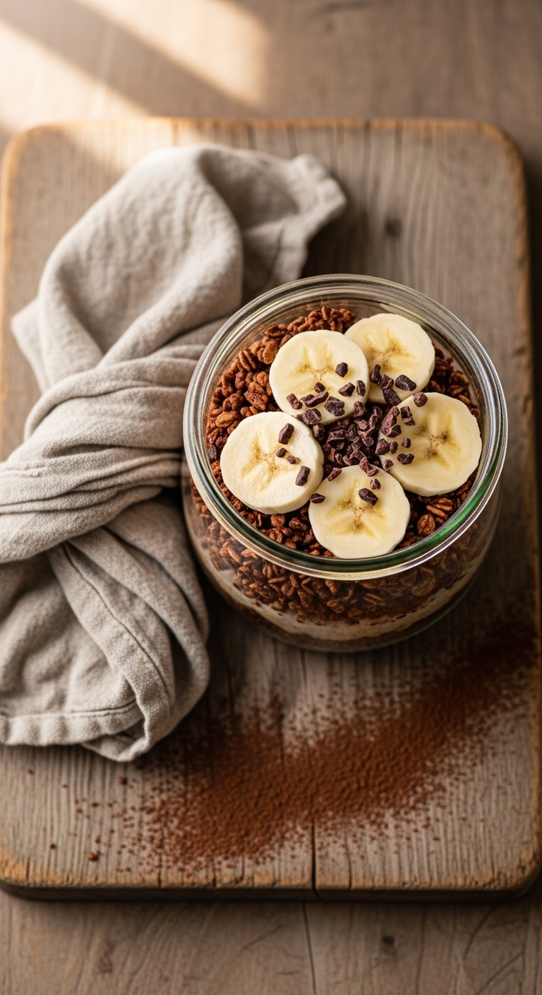 Spoon into jars and top with fresh fruit and crunchy nuts. Pair with black coffee or a tea. For a layered parfait, add granola just before serving to keep crunch. This makes a great post-workout breakfast. If too thick, thin with a splash of milk.