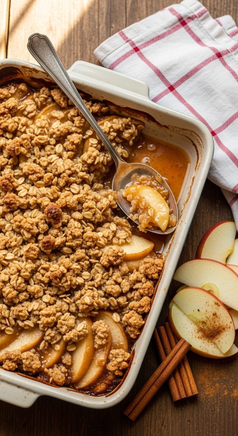 - Sprinkle the oat mixture evenly over apples, pressing lightly.