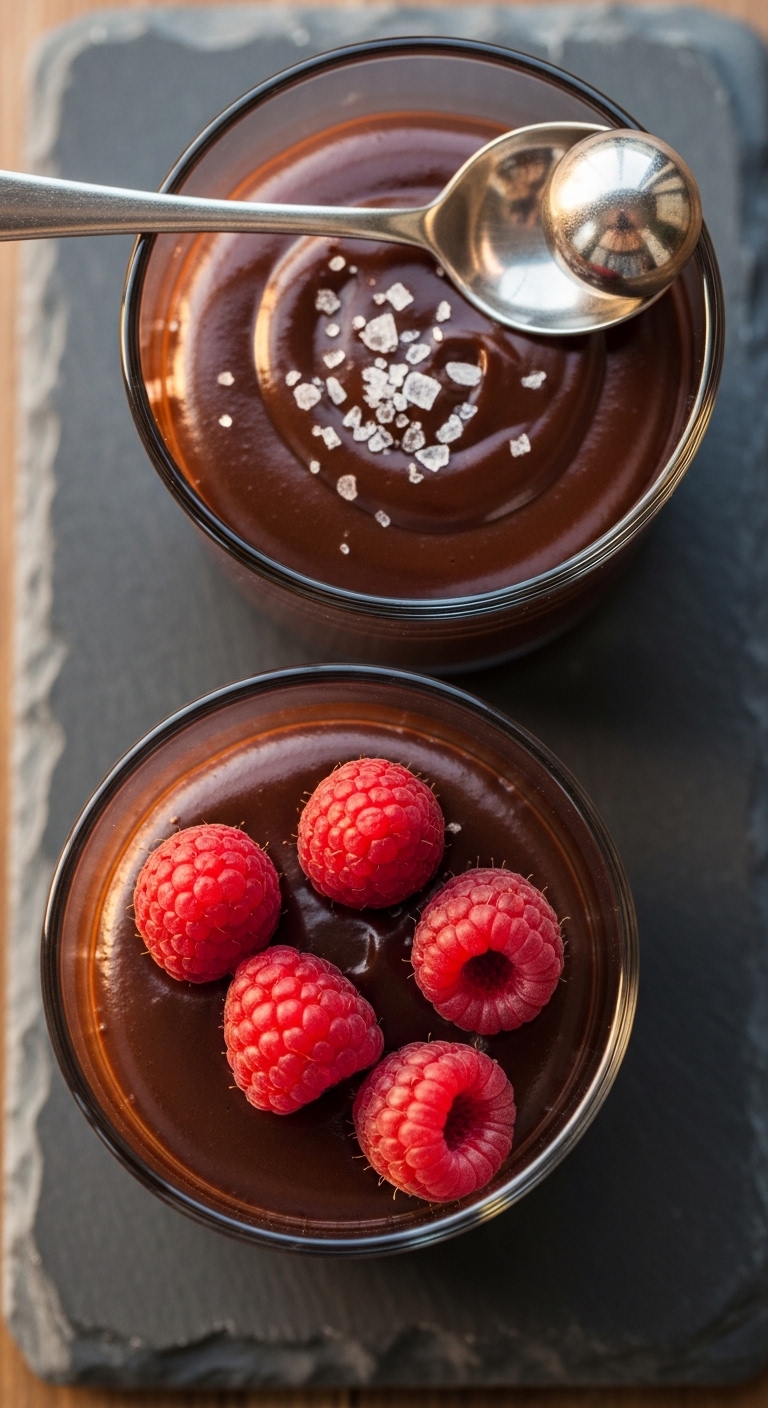 Serve chilled in small glasses with a few raspberries on top. Add toasted coconut flakes or a swirl of almond butter for contrast. Pair with espresso or mint tea. Store covered in the fridge up to 3 days. Make-ahead for dinner parties and spoon straight from the fridge.