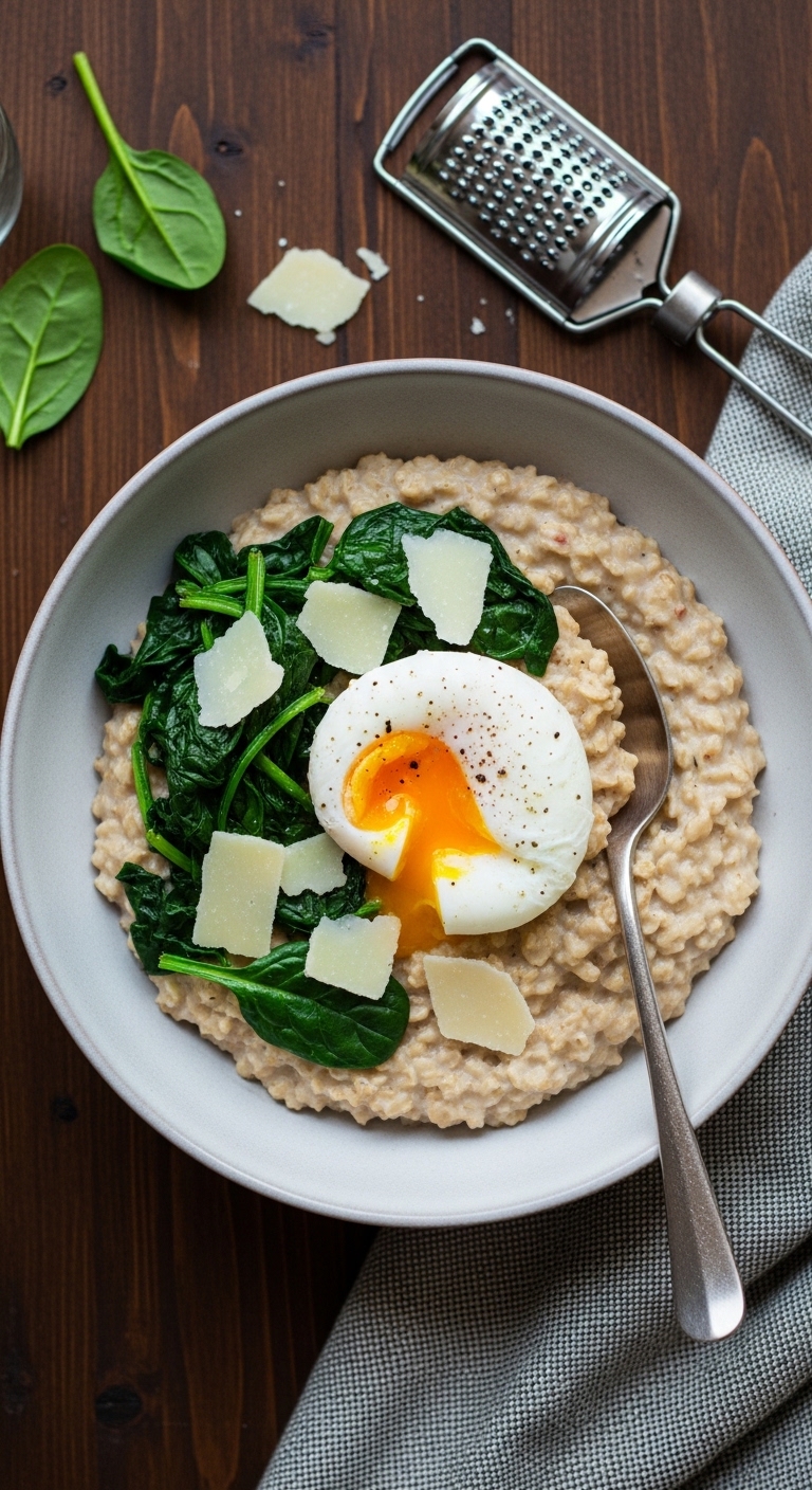 11. Savory Oatmeal with Egg, Spinach & Parmesan