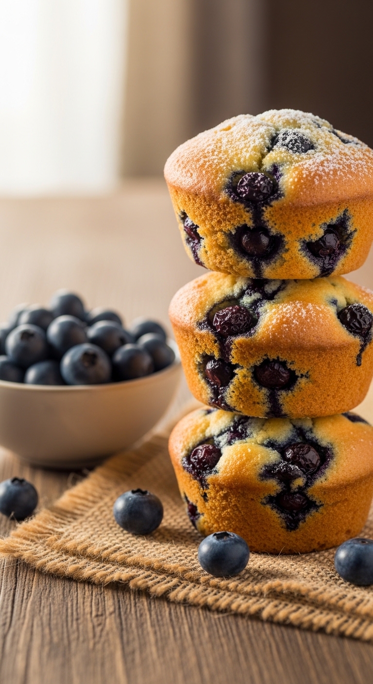 These almond flour muffins are moist, nutty, and studded with juicy blueberries. Almond flour plus protein powder creates a dense, protein-forward crumb. They’re a portable protein packed breakfast for busy days. You’ll love the tender crumb and sweet berries. Muffin tops smell warm and nutty.
