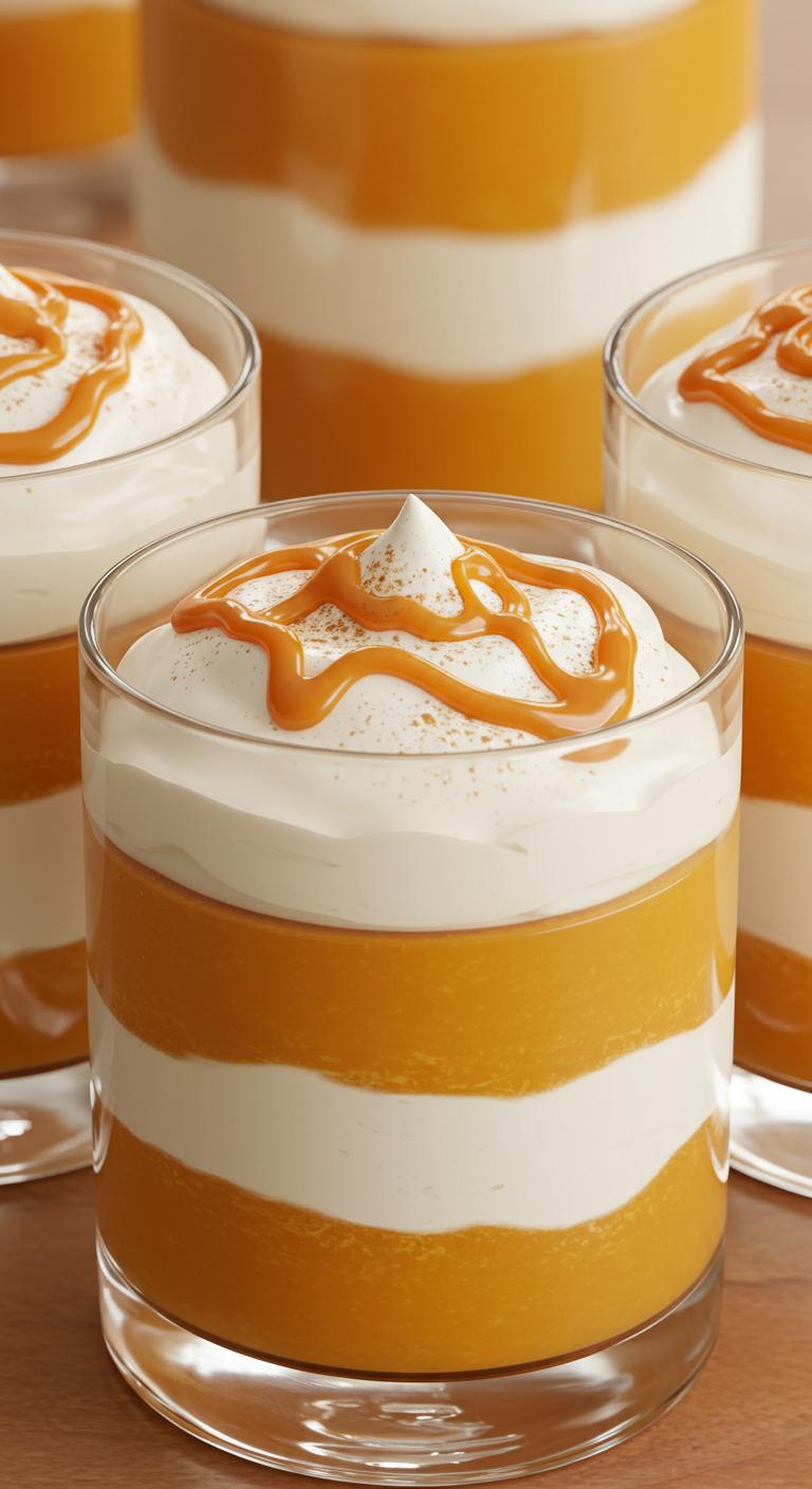- In a glass, layer graham crackers, pumpkin, whipped cream, and caramel.