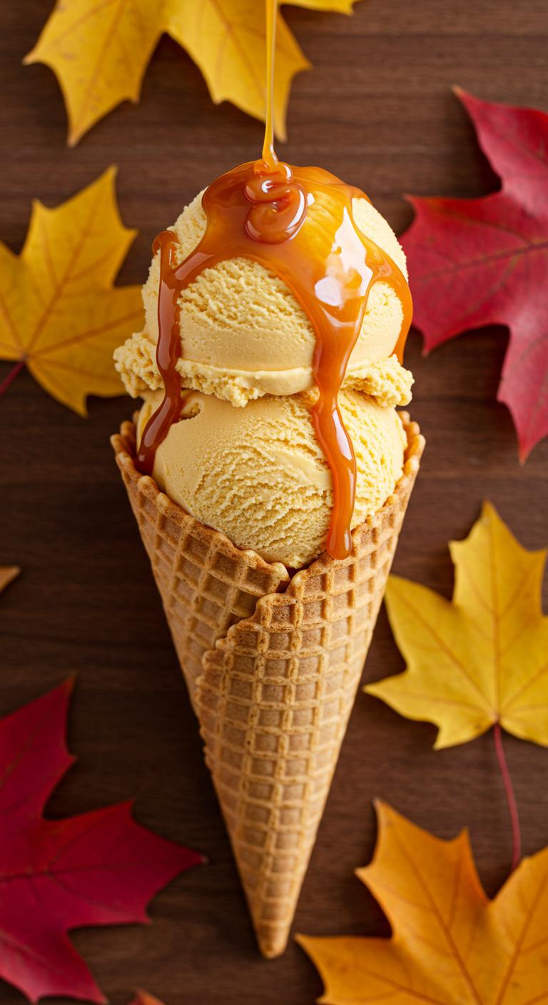 - Churn in an ice cream maker, adding caramel swirls before freezing.