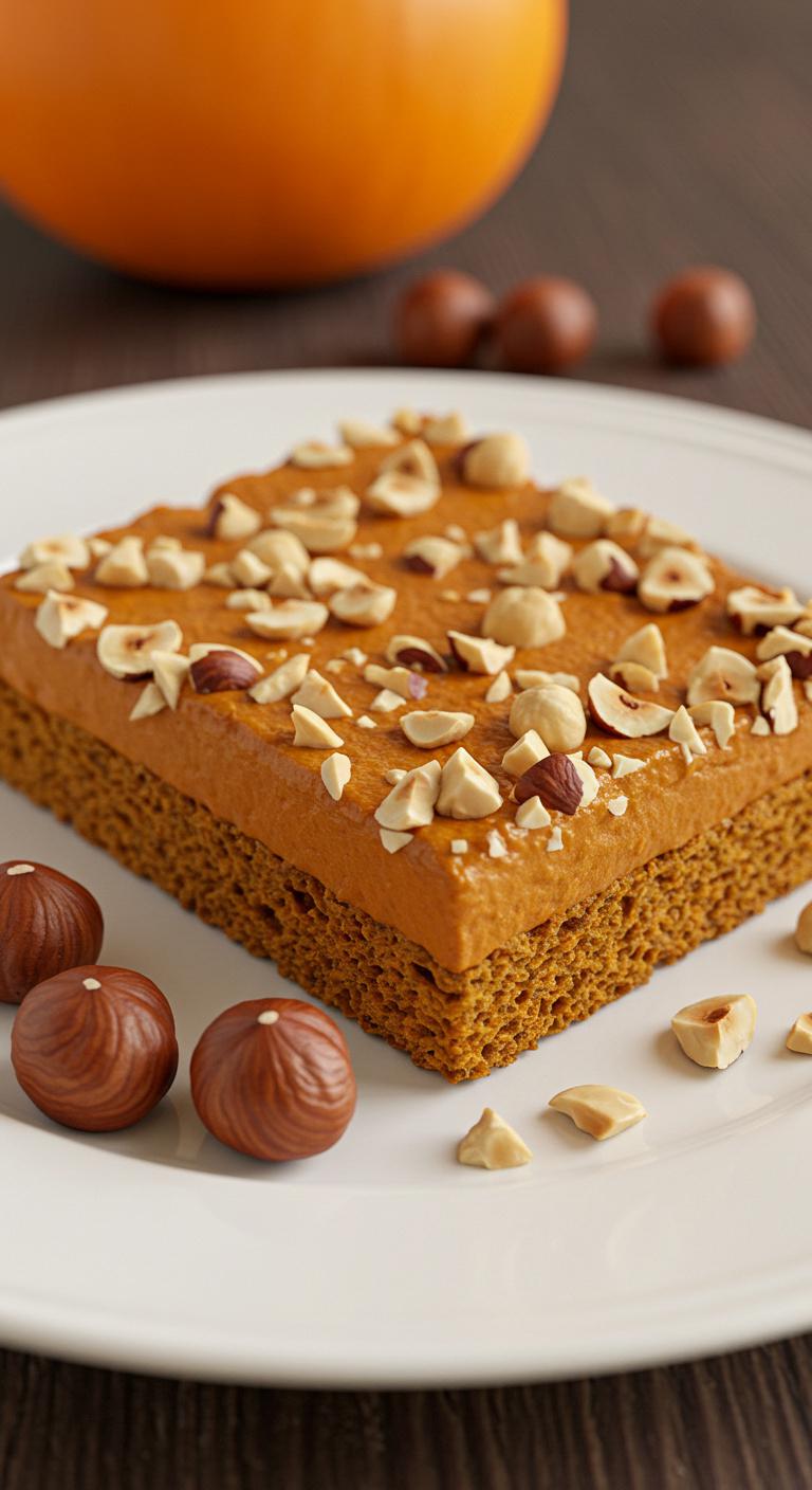 - Cream together butter and sugar, mix in pumpkin and hazelnuts.