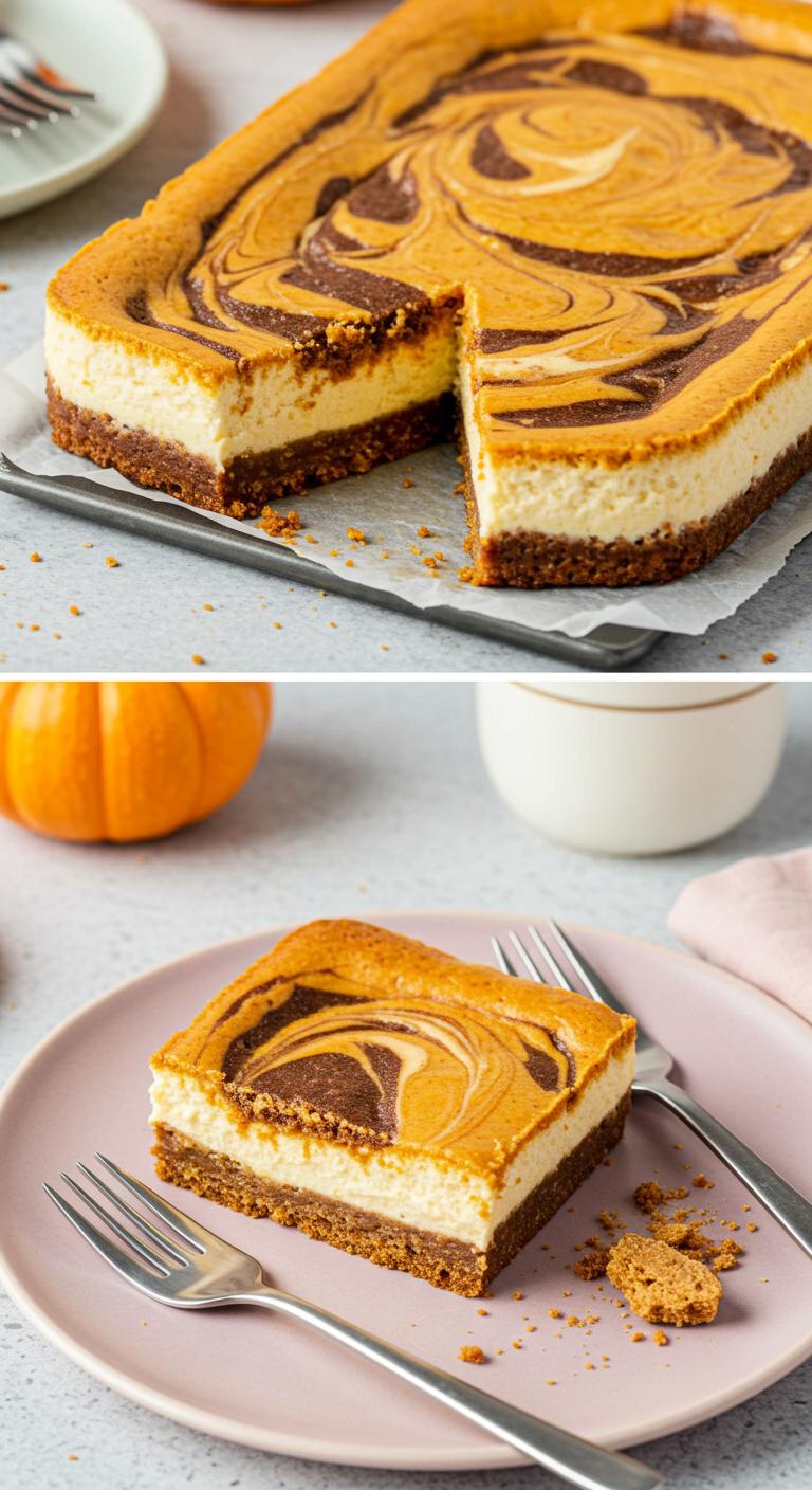 - Beat cream cheese, sugar, and eggs until smooth, then swirl in pumpkin.