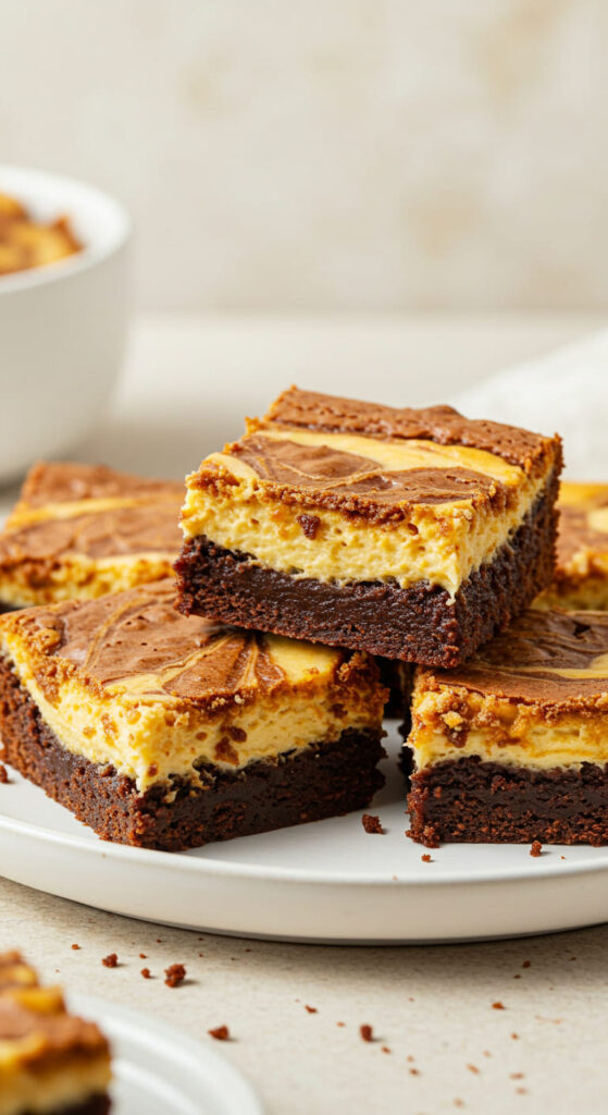 - Mix cream cheese, pumpkin, sugar, eggs, and cinnamon; layer on top of brownies. Pour rest of the brownie batter.