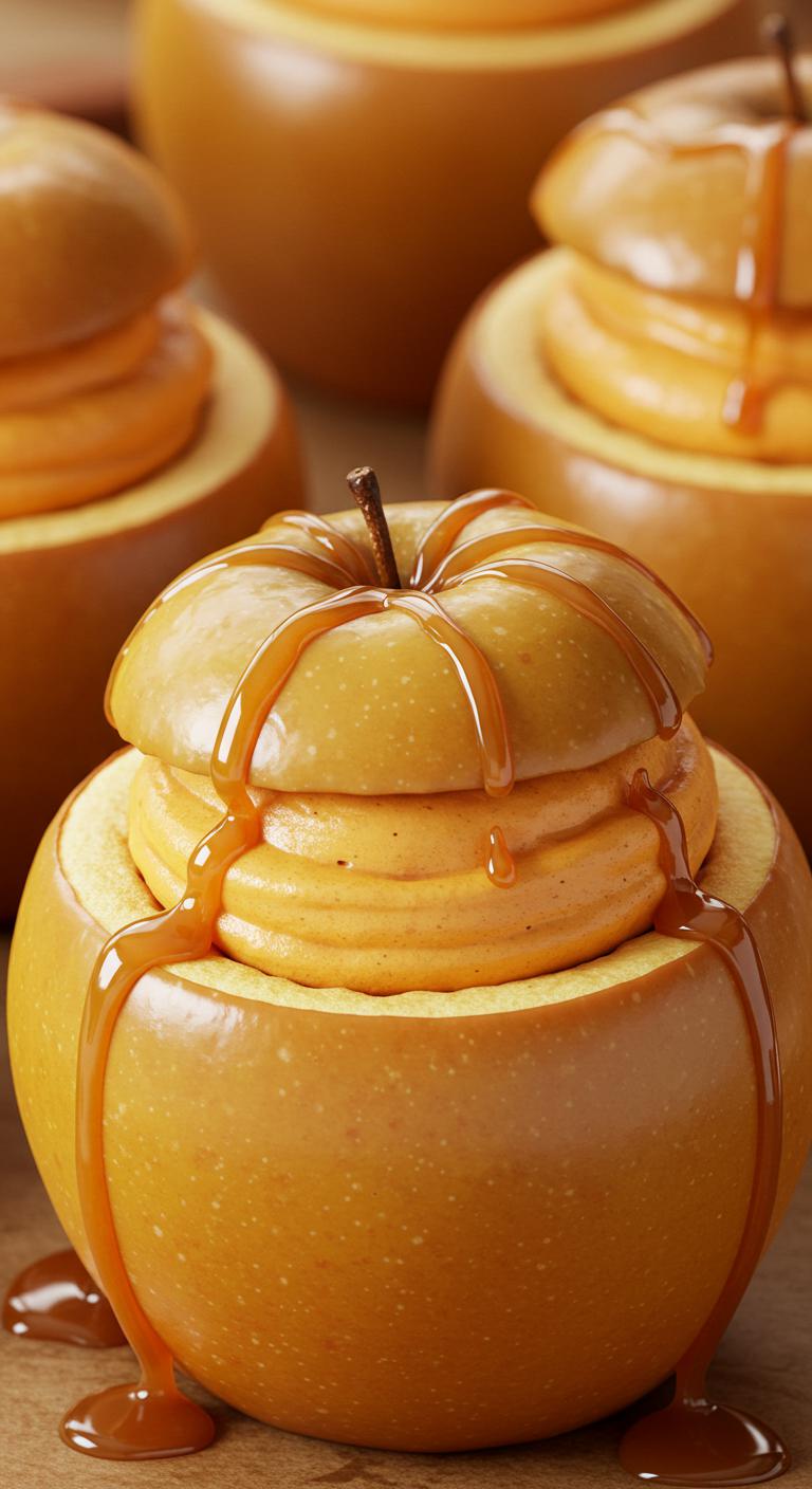 - Beat cream cheese, pumpkin, sugar, and cinnamon until smooth; stuff into apples.