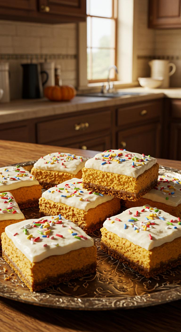 - Stir in pumpkin, powdered sugar, vanilla, and spice until combined; pour into a lined baking dish.