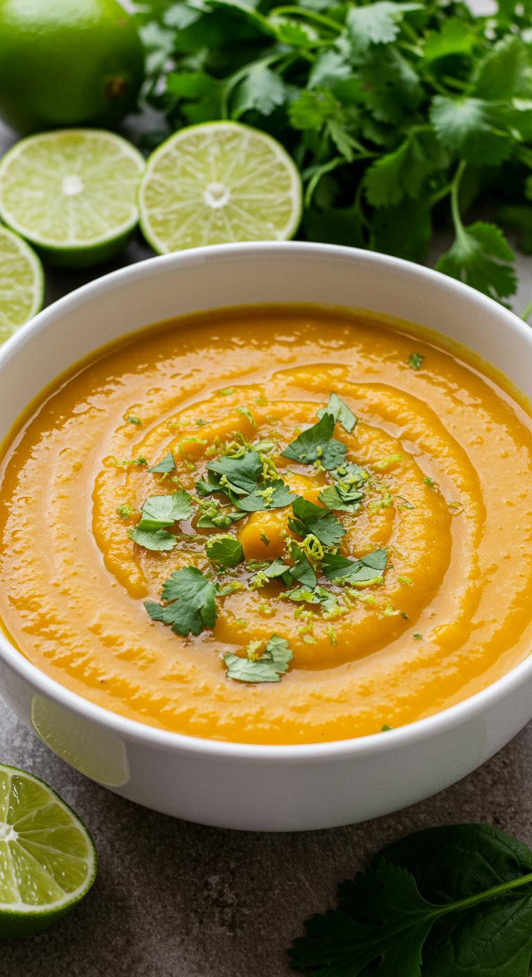 This refreshing twist adds a zesty brightness to traditional pumpkin soup.
