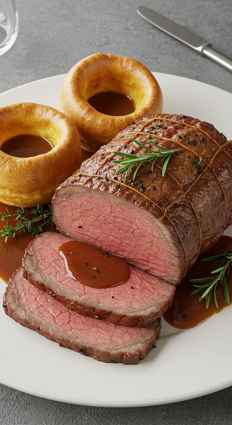 Experience a traditional British pairing of roast beef and Yorkshire pudding.
