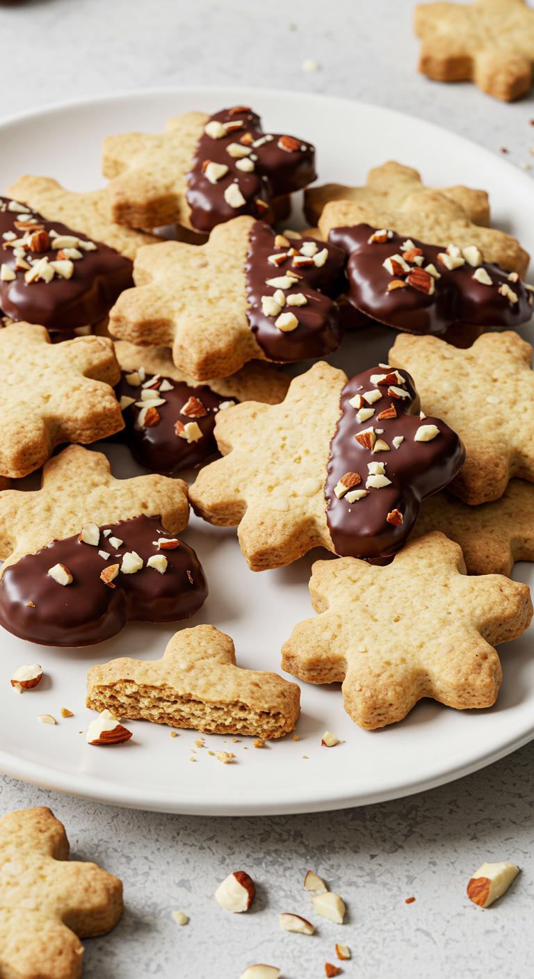 - Chill, roll, cut shapes, and bake at 350°F for 10-12 minutes. Once cool, dip half into melted chocolate.