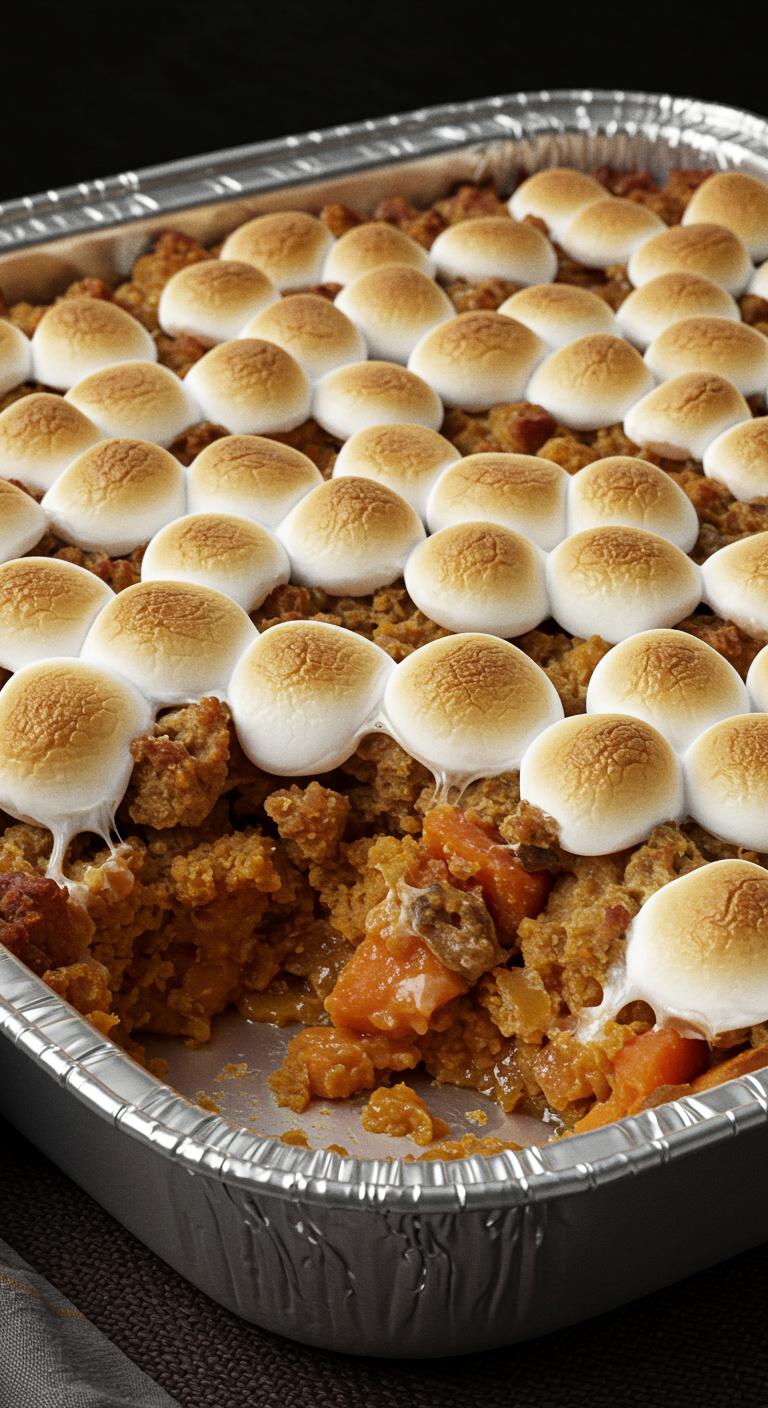 - Bake at 350°F (175°C) for 30 minutes; top with additional marshmallows and broil until golden.