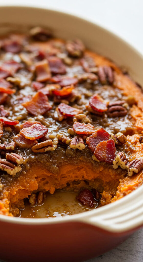 - Top with remaining bacon and pecans, then bake at 375°F (190°C) for 25 minutes.