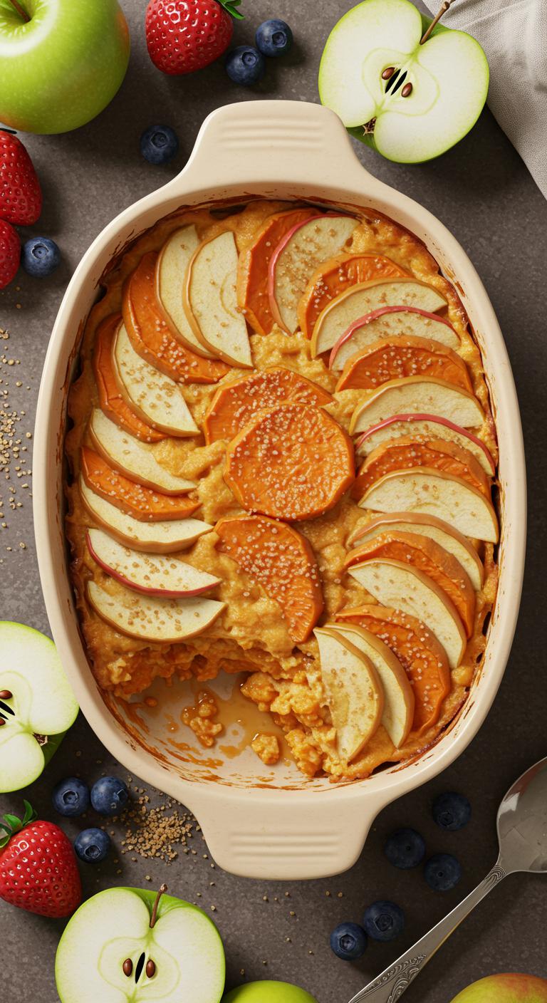 - Preheat oven to 350°F (175°C). Mix sweet potatoes, apples, sugar, and butter together.