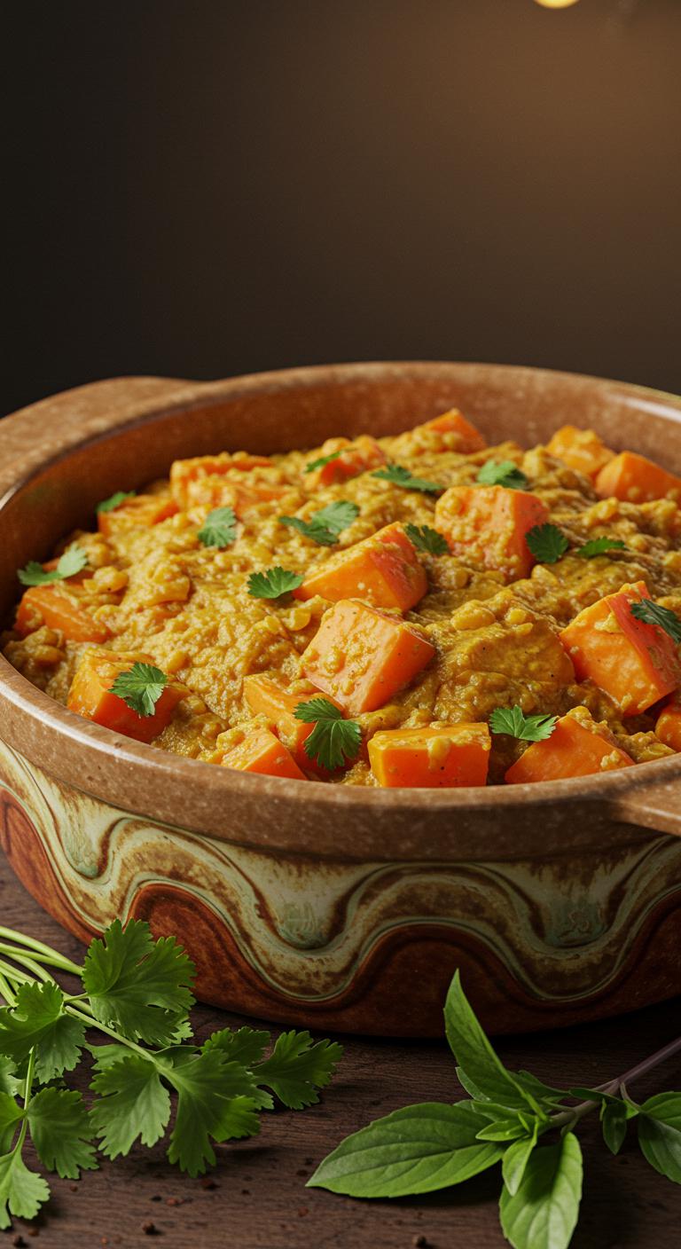 - Preheat your oven to 375°F (190°C). Mix sweet potatoes, coconut milk, and curry paste together until smooth.