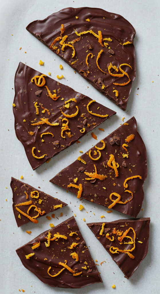 - Melt milk chocolate until smooth, then mix in orange zest.