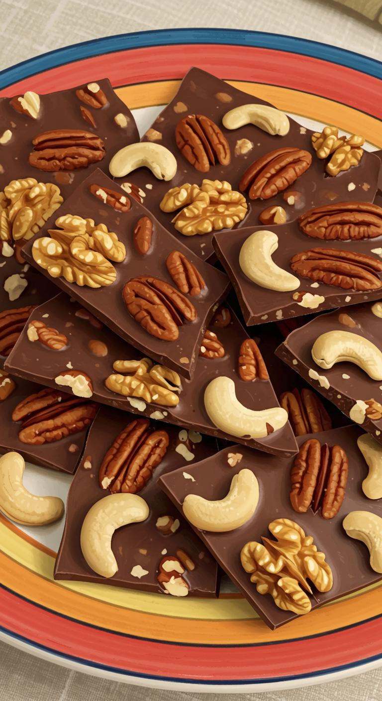 - Sprinkle mixed nuts on top while the chocolate is still warm.