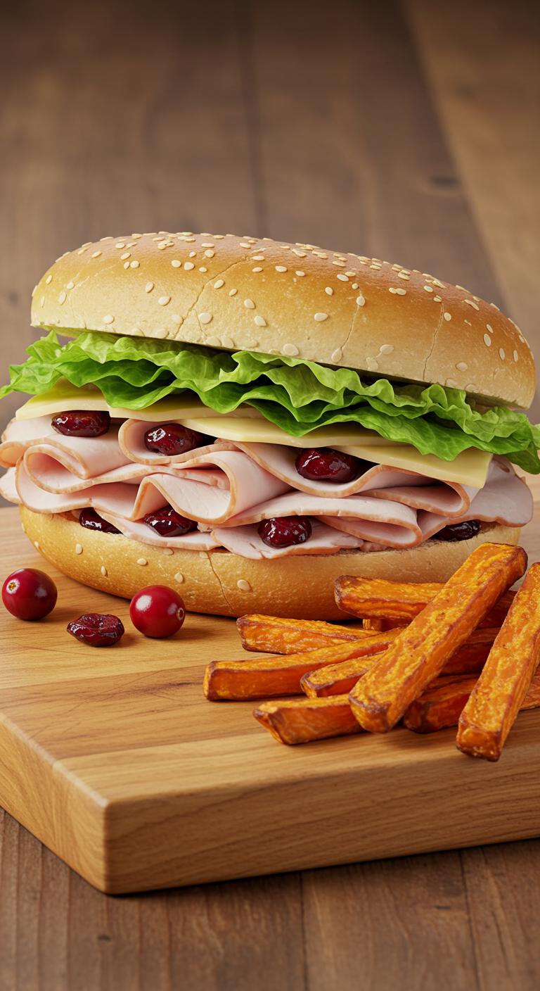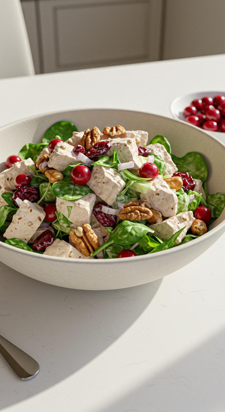 - In a bowl, combine turkey, greens, walnuts, and cranberries.