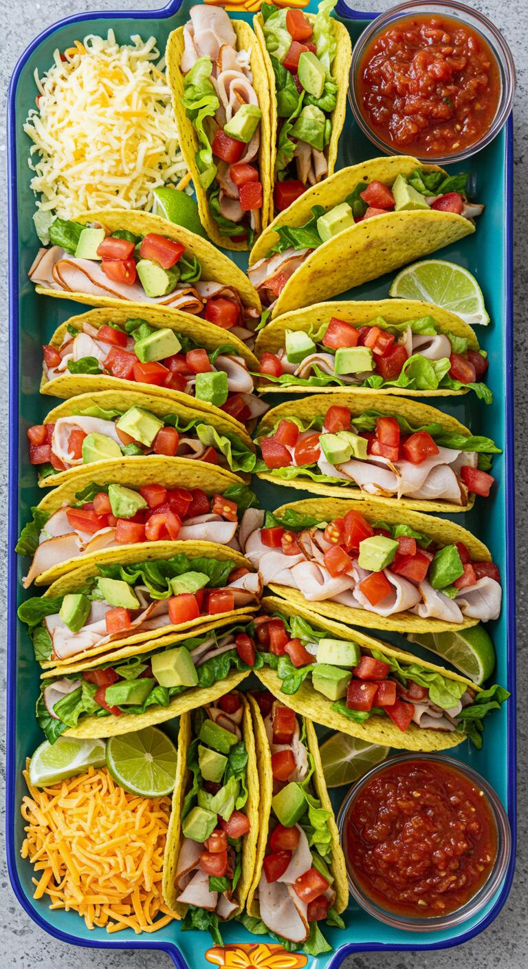 - Fill each shell with turkey, lettuce, and tomatoes.