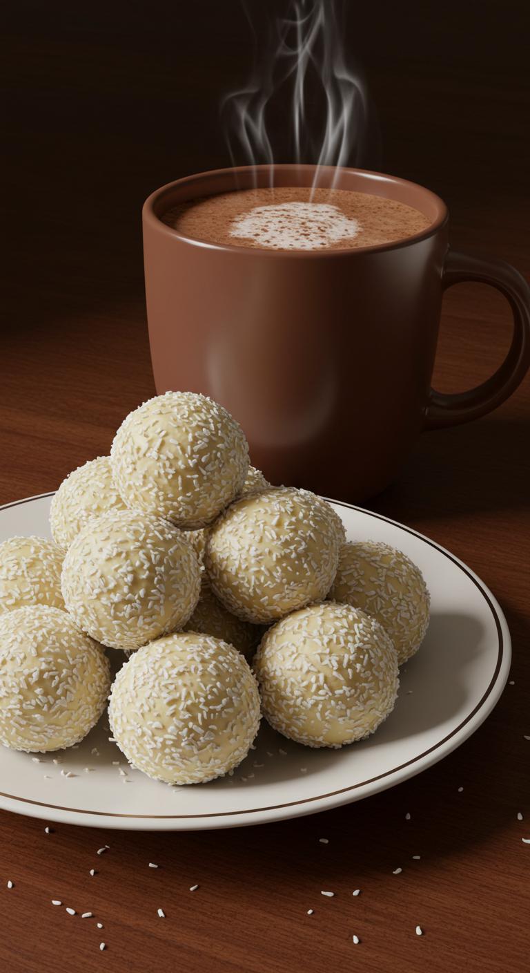 - Let the mixture cool, shape into balls, and roll in coconut.