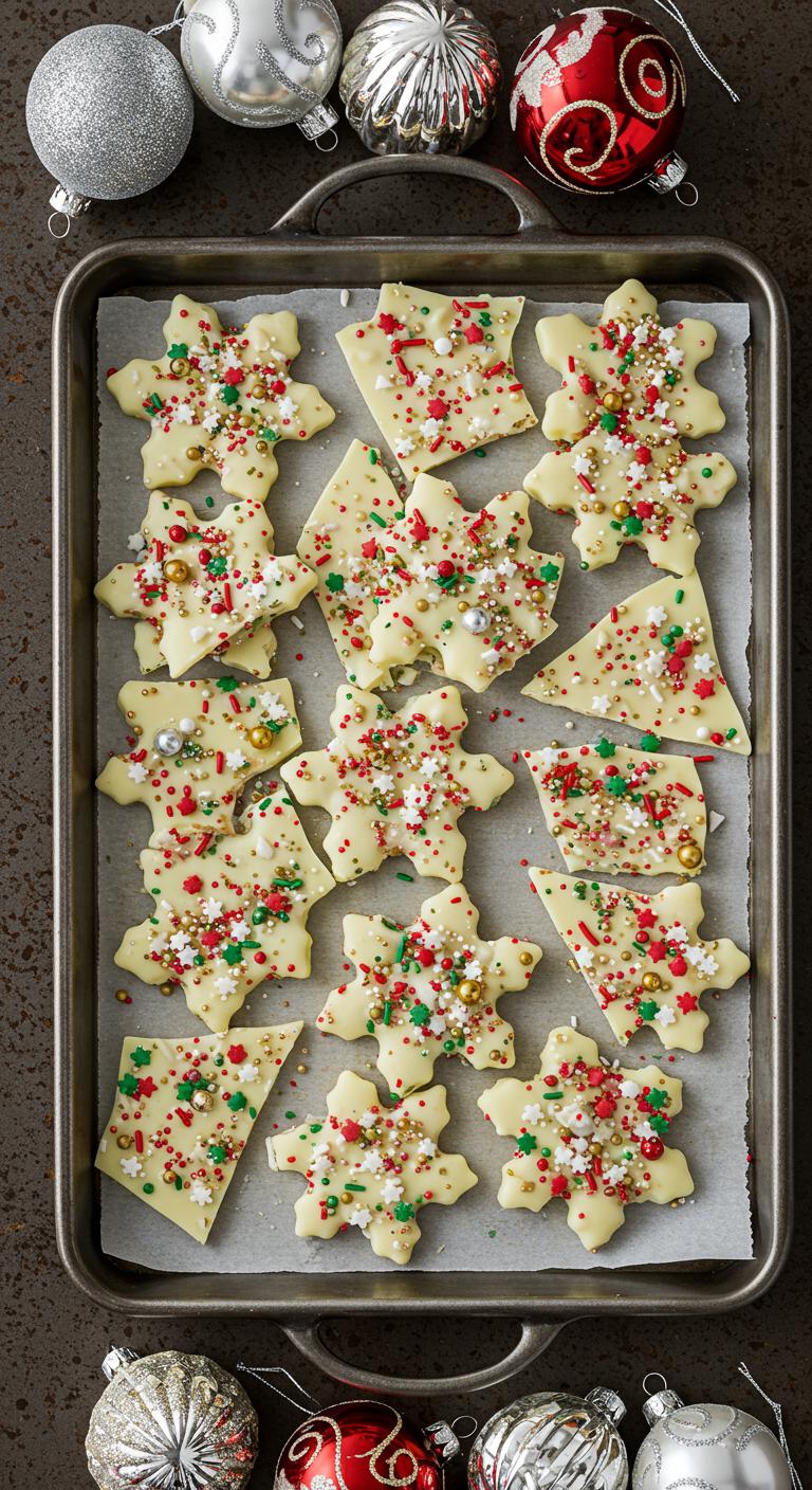 - While still warm, use a cookie cutter to create snowflake shapes and sprinkle on toppings.