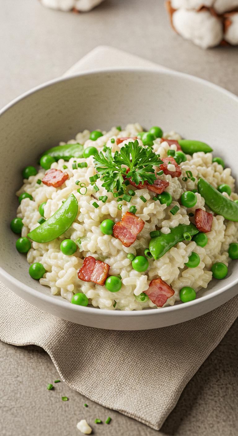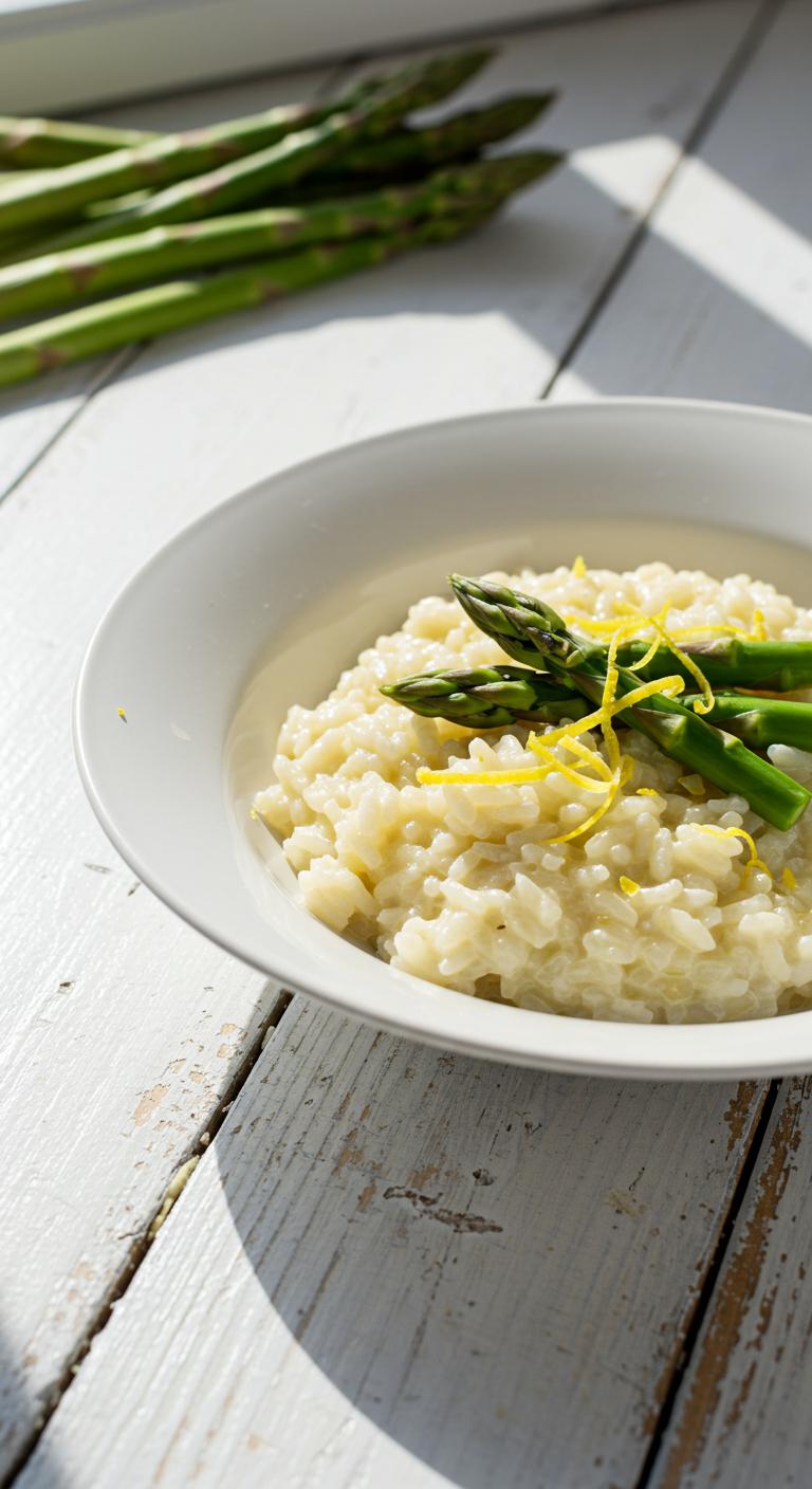 - Incorporate broth slowly until creamy, adding asparagus halfway through.